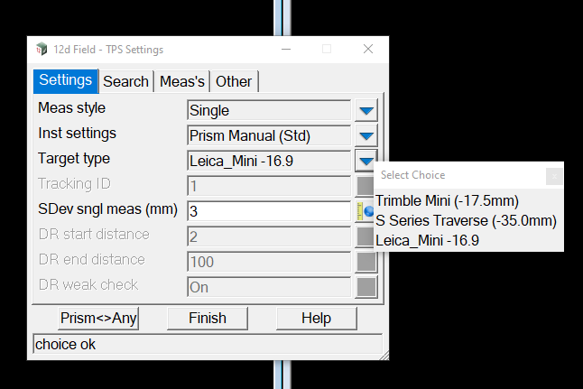 12df comes with a number of predefined prisms depending on your instrument type. 12df makes the assumption that you will match your manufactures prisms and Total Stations.