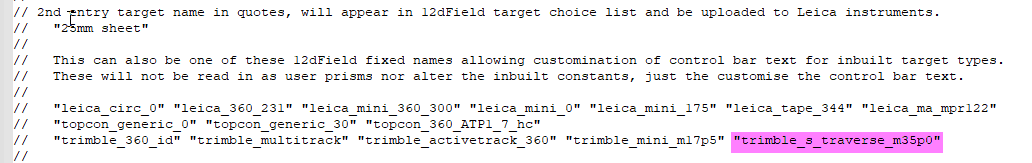 The actual prism name – in this case “trimble_s_traverse_m35p0” – is listed in the header for the 2nd field description