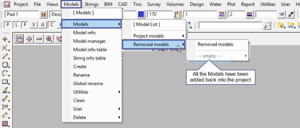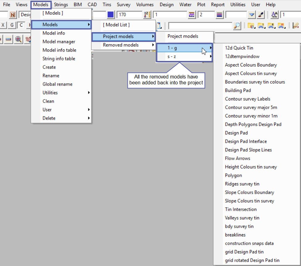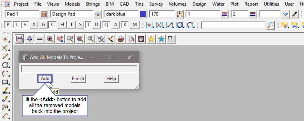 This option is used to Add all removed Models back into the project.