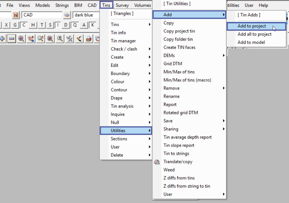 To Add a Tin to a Project, Use: Tins => Utilities => Add => Add to Project
