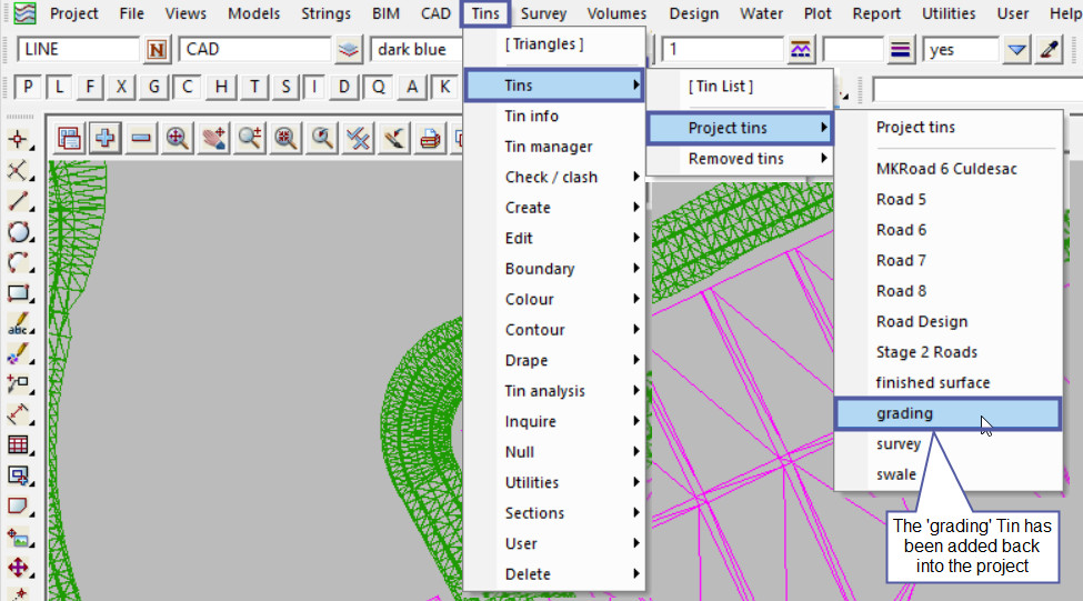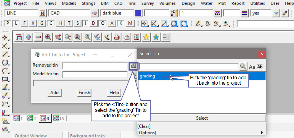 Hit the <Add> button to add the ‘grading’ tin back into the project, it will then be available to be edited in the project.