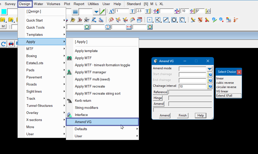 To view this Panel, Use: “Design => Apply => Amend VG”