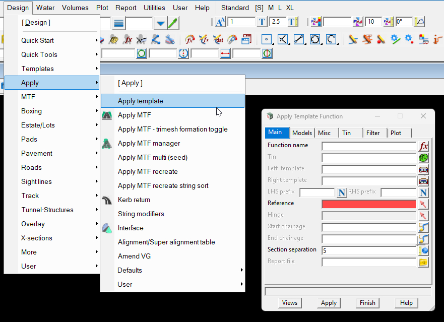 Note: The Apply template option is available to all 12d Model Users and is linked to the “Points Base” module.