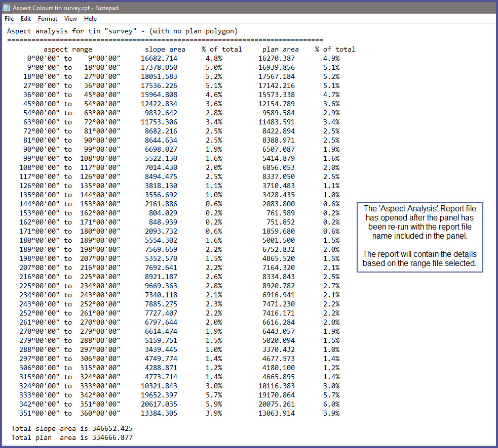 Here is the Aspect Range Report file which is opened after the panel was run.