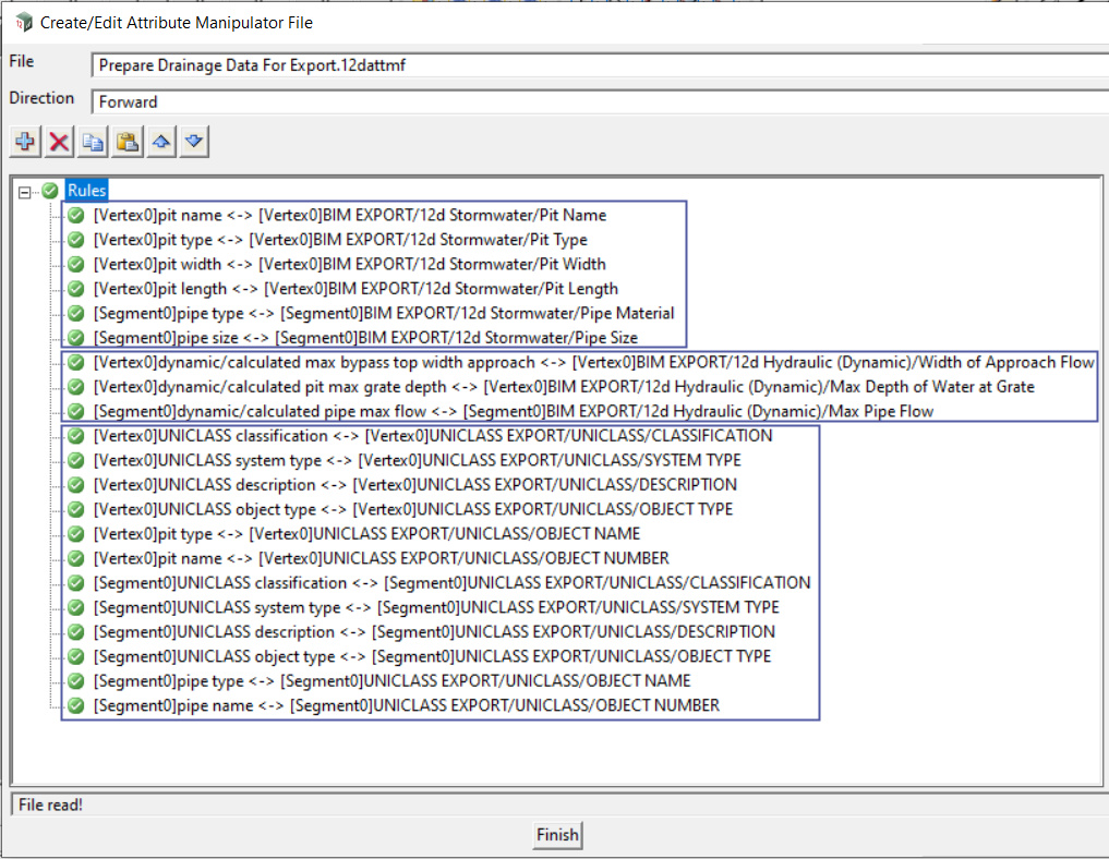 These Rules are used to prepare data about the physical layout of the Stormwater Network for export to  a Federated Model.