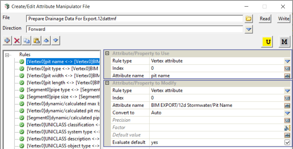 The important thing is that the new attribute will be stored in an attribute Group ’12d Stormwater’, which in turn will be stored in an attribute Group ‘BIM EXPORT’.