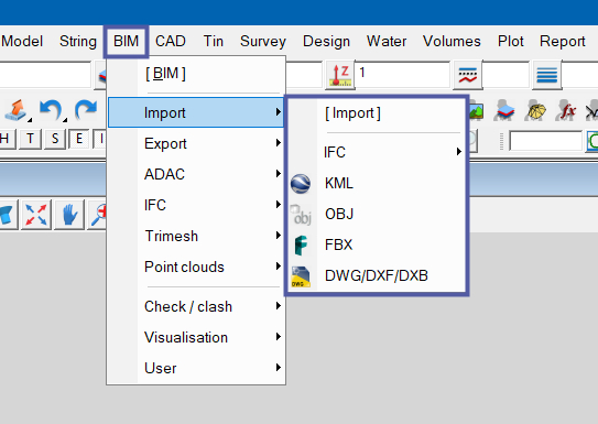 The BIM Import data options are also available under “File => Data input”