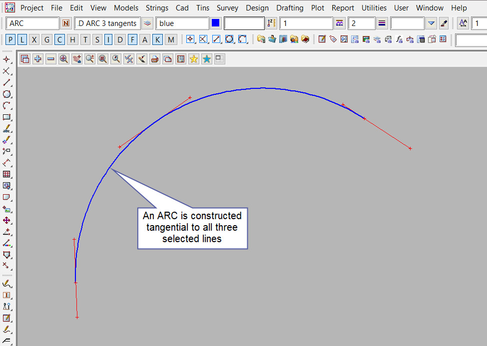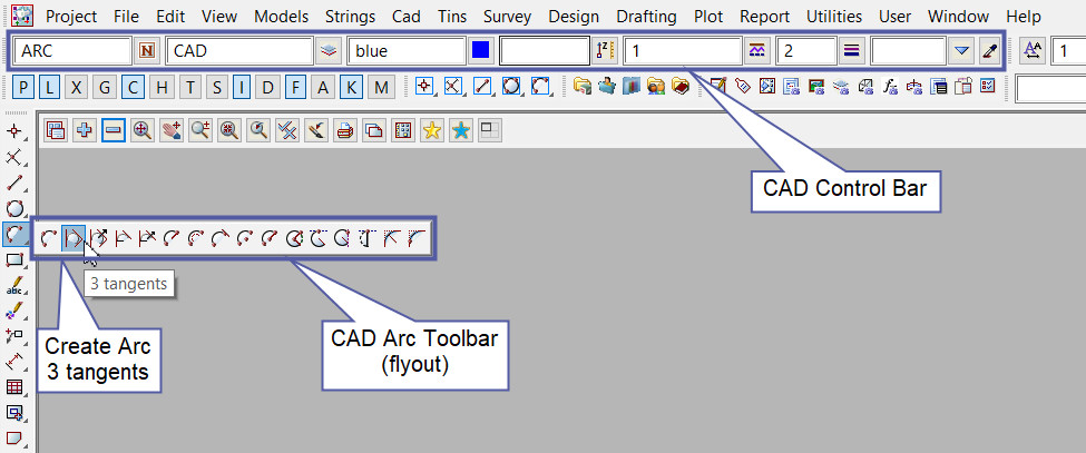 This CAD Arc 3 Tangents option is found on the CAD Arc Toolbar, and is the 2nd option when the toolbar files out.