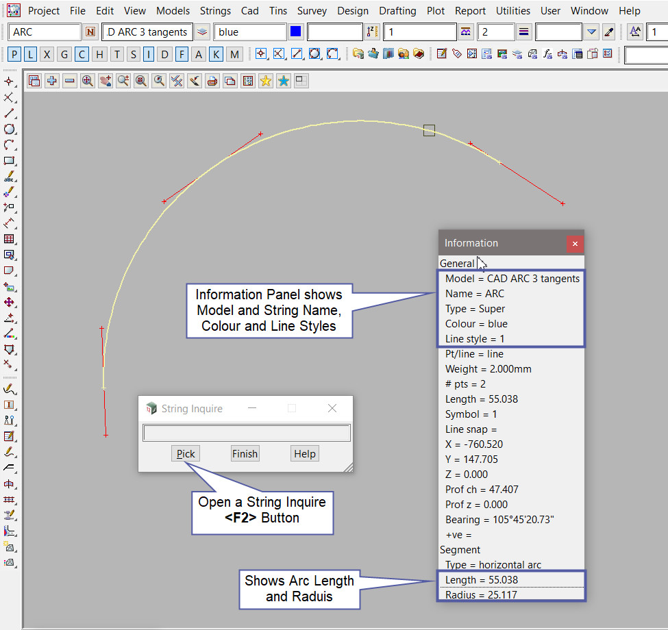 Use a String Inquire <F2> to check the Arc details.