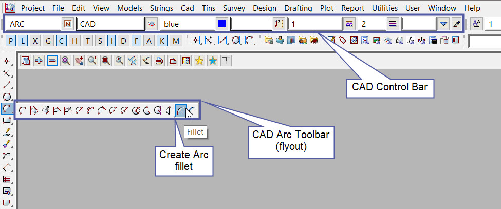 This CAD Arc Fillet option is found on the CAD Arc Toolbar, and is the 15th option when the toolbar files out.