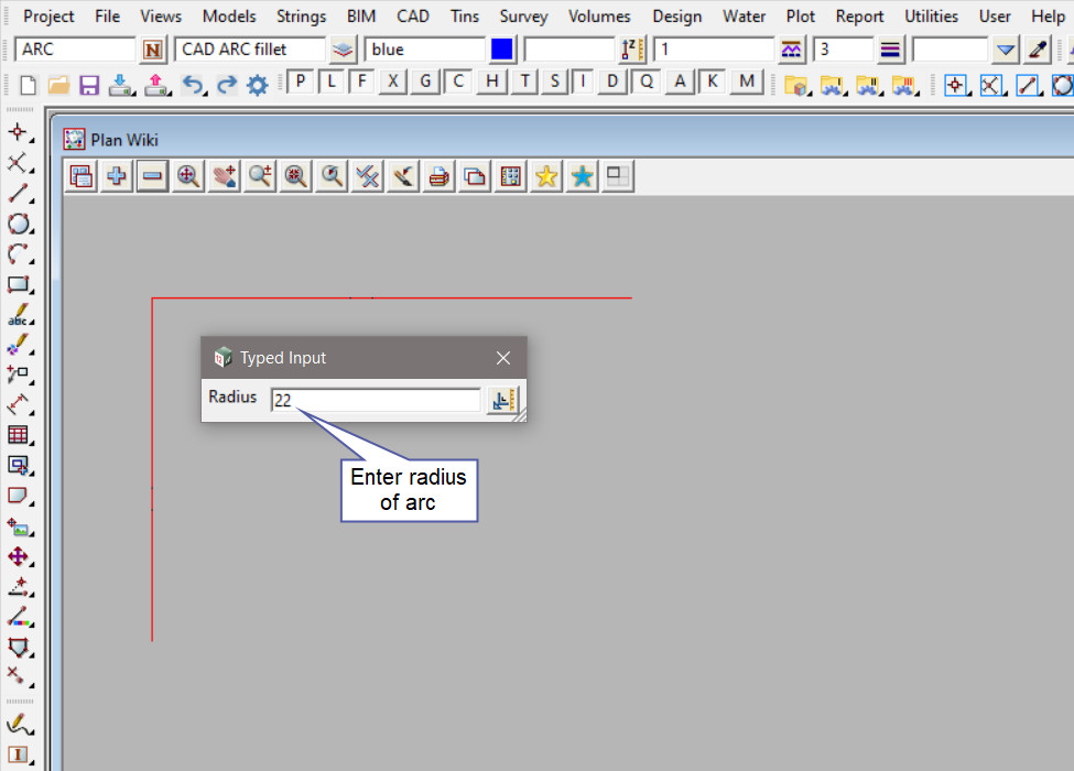 Enter radius of Arc (Fillet).