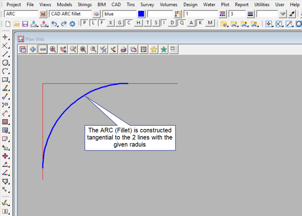 This tool is used to create a CAD Arc, using fillet.