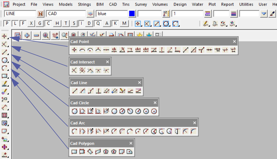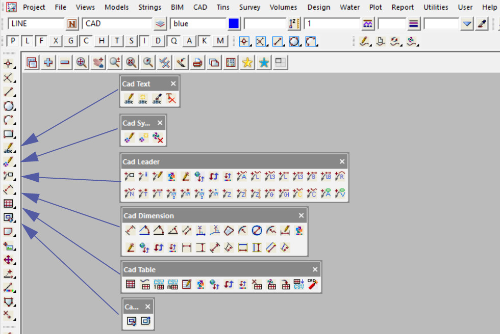 Here are the CAD Toolbars that use the default option from the CAD Control Bar to create the strings: