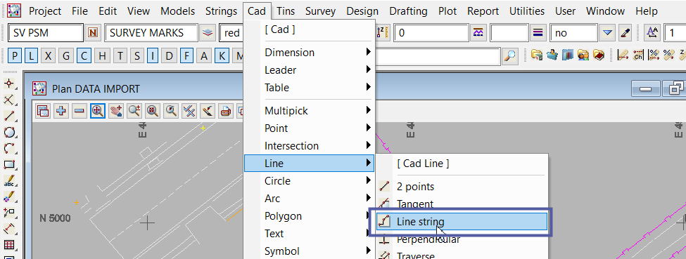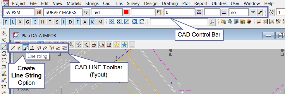 The CAD Line String option can also be found on the menu.