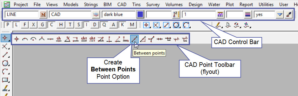 This CAD Point Between Points option is found on the CAD Point Toolbar, and is the 15th option when the toolbar files out.