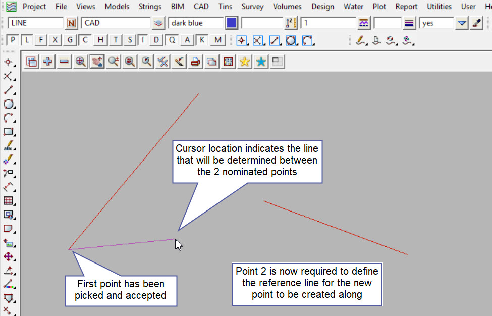 Note: If a second point is to be created the option is still active in the project until another option is selected, or it is cancelled. The user can select the next start position and use the option again.