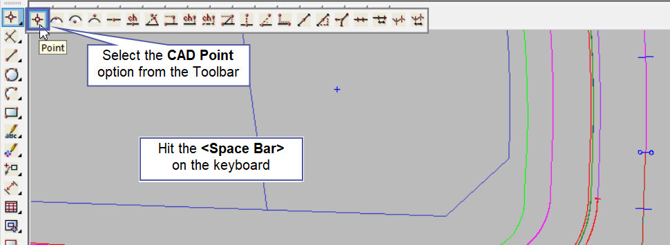 To create a Point at a known coordinate, select the Point option on the CAD Point Toolbar