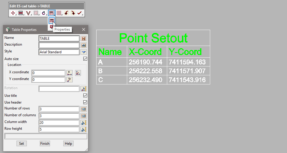 Existing tables may also be edited, go to: Cad => Table => Edit