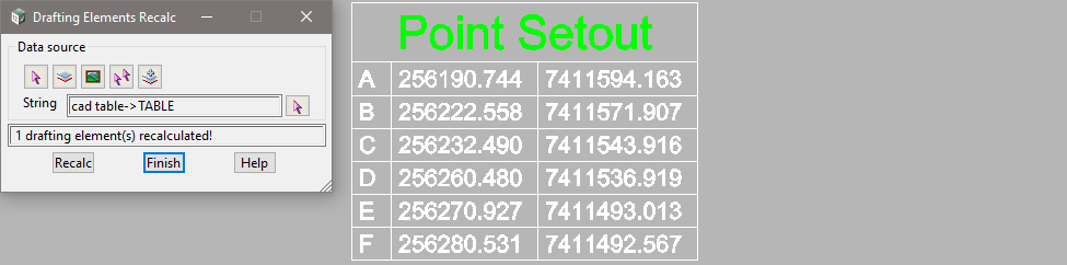 From the menu, go to: Cad => Table => Recalc data source