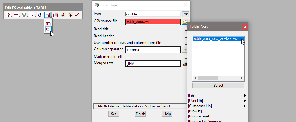 On the Edit Cad Table toolbar, go to: Properties > Type reselect the CSV source file.