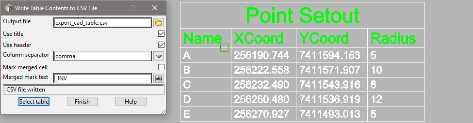 Tables in 12d Model can be created, associated with, and updated from, a CSV file. Additionally, a Table created in 12d Model can be exported to CSV.