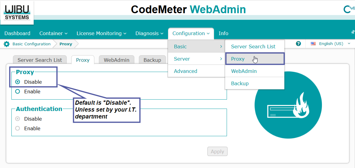 Use “Configuration >Basic >Proxy” to confirm the setting is disabled.