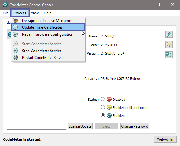 When you press ‘Certify’, the Codemeter software will connect to an internet time server to update the date/time stored on the dongle.