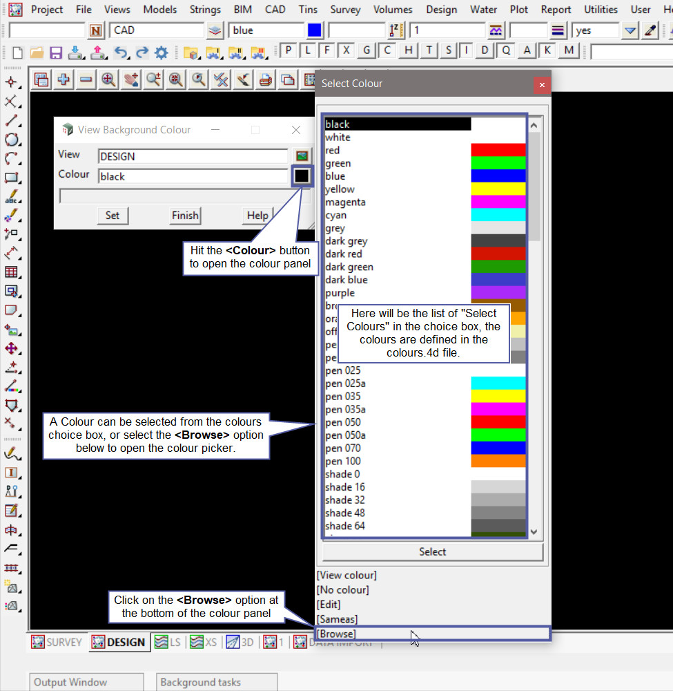 If a different colour is required, then hit the <Browse> option at the bottom of the panel.
