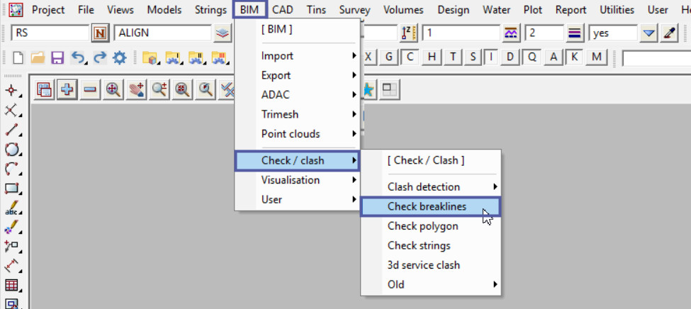 To view the Check Breaklines Panel, Use: BIM => Check/Clash => Check Breaklines