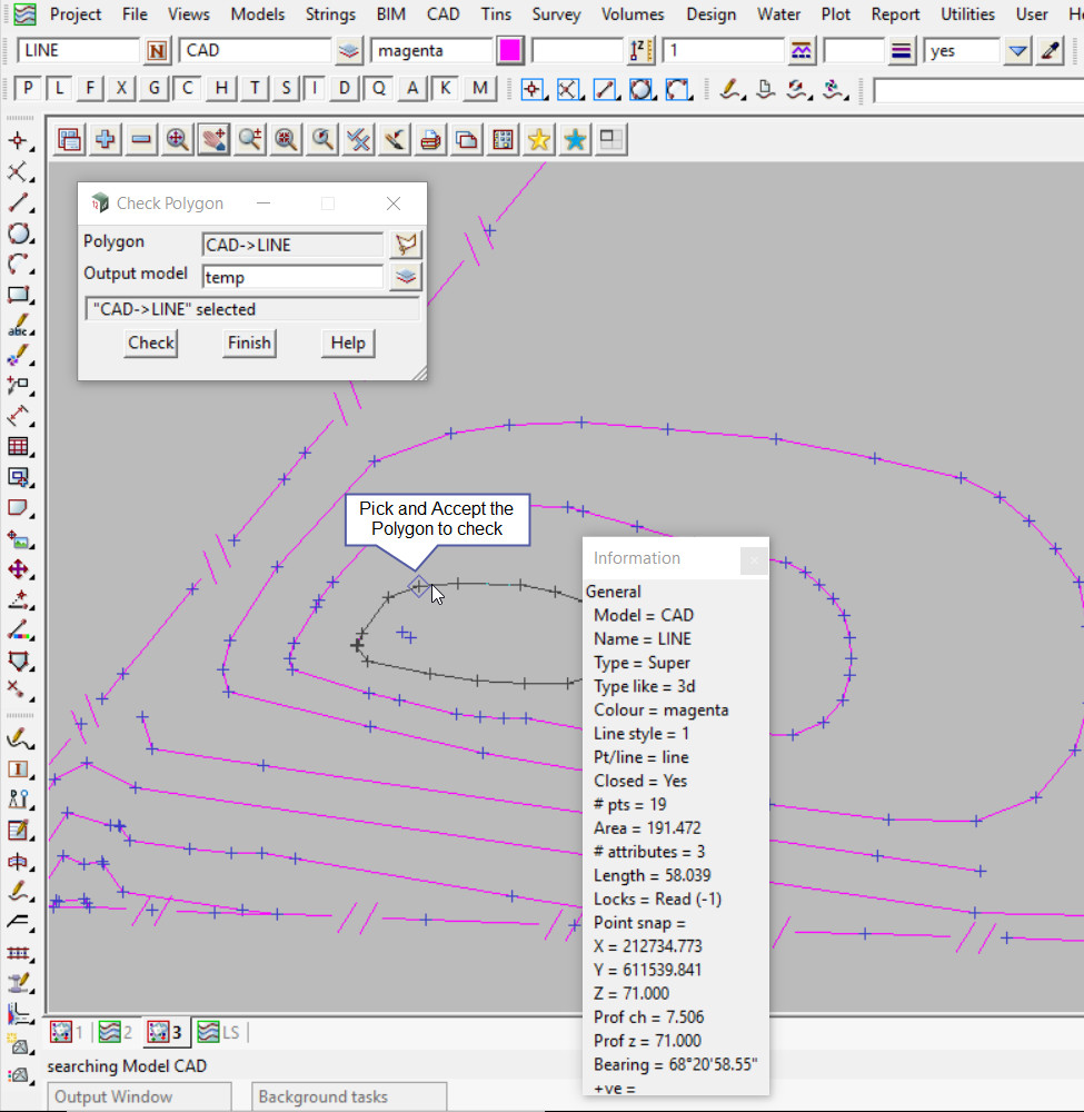Pick the <Polygon> button to select the polygon to check.