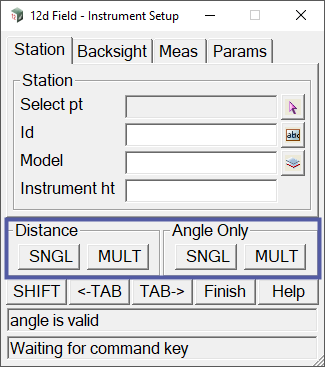 - Angle Only MULT – The <Angle Only MULT> button when pressed, will take a Face Left and Face Right bearing only shot.