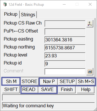 SETUP – The <SETUP> button when pressed, opens up the 12d Field – Store Point Setup panel.