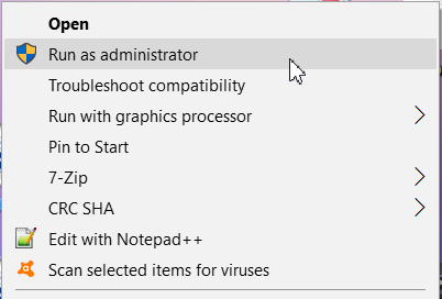 Right-click on the installer, and choose ‘Run as Administrator’.