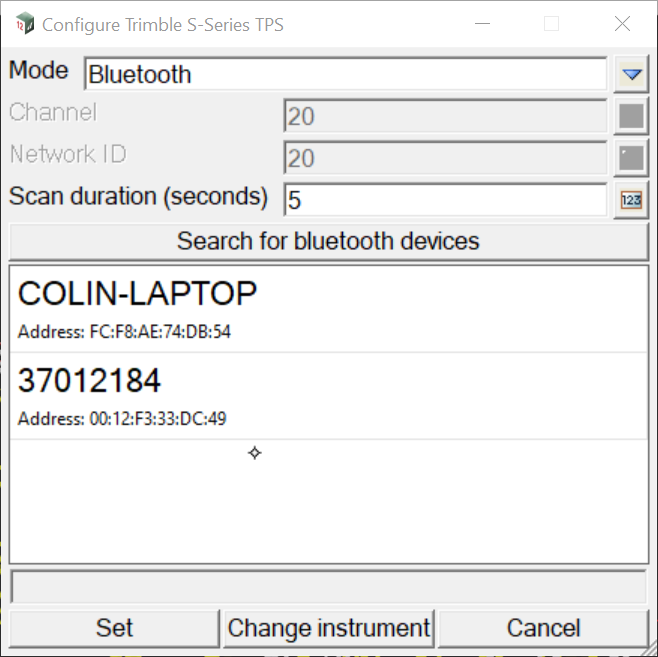 On pressing Set you will be taken to 12d’s bluetooth search menu