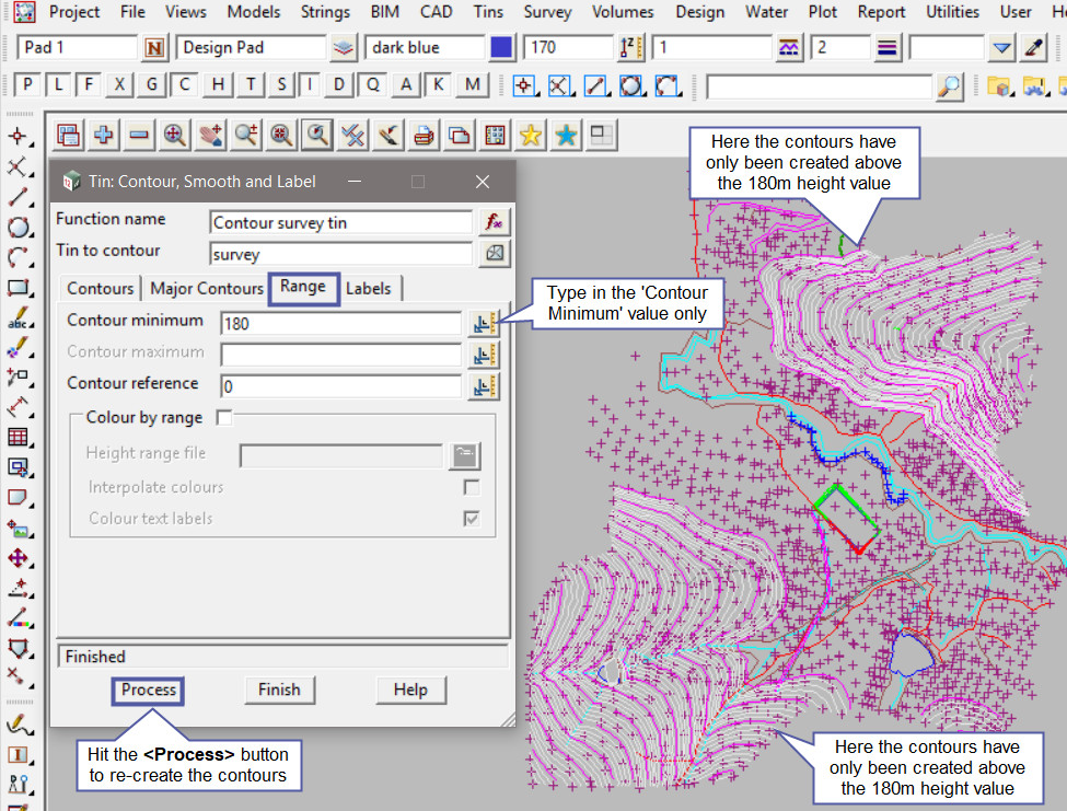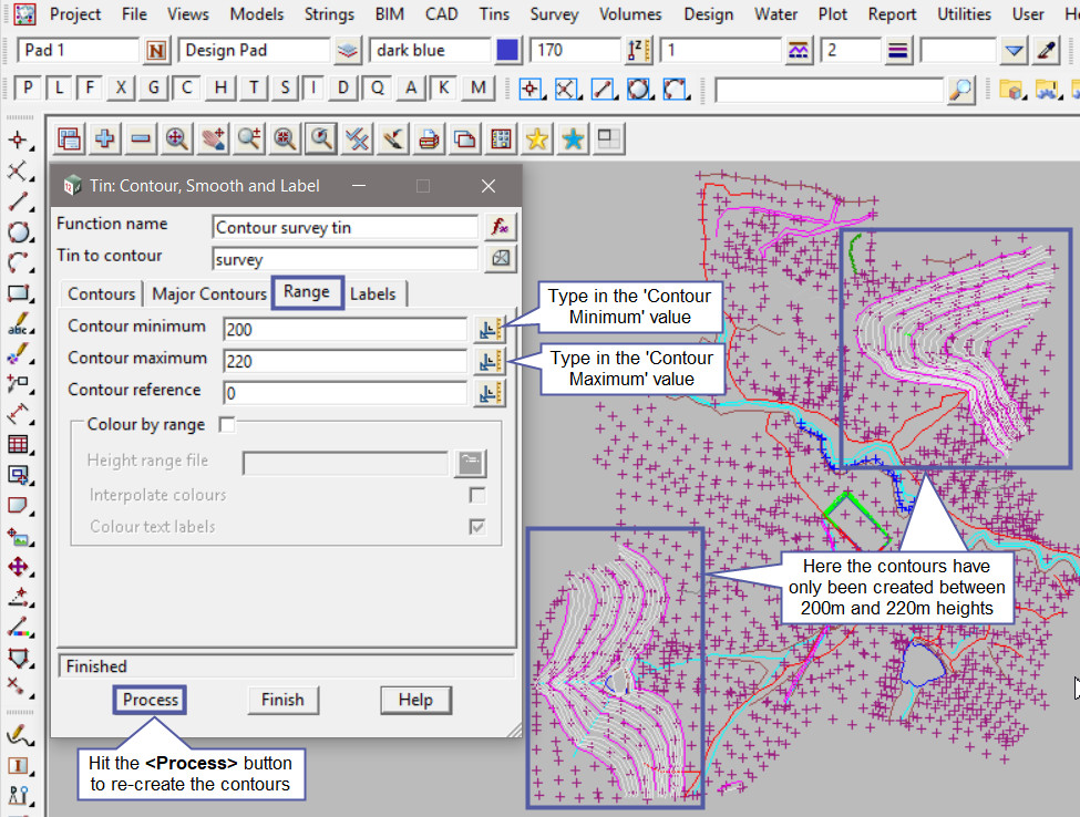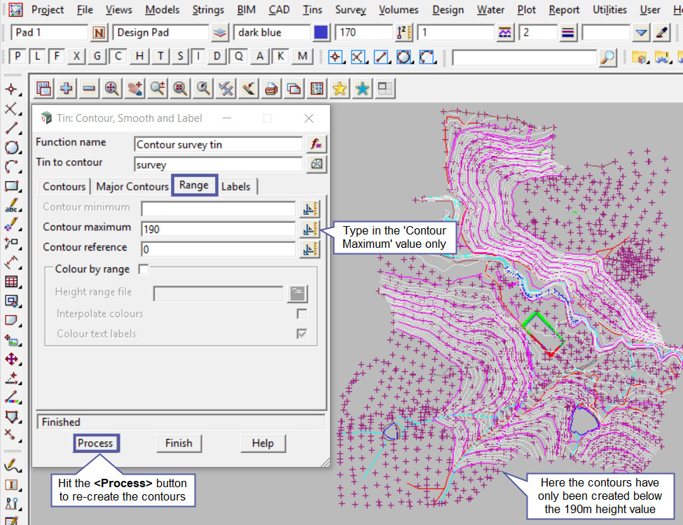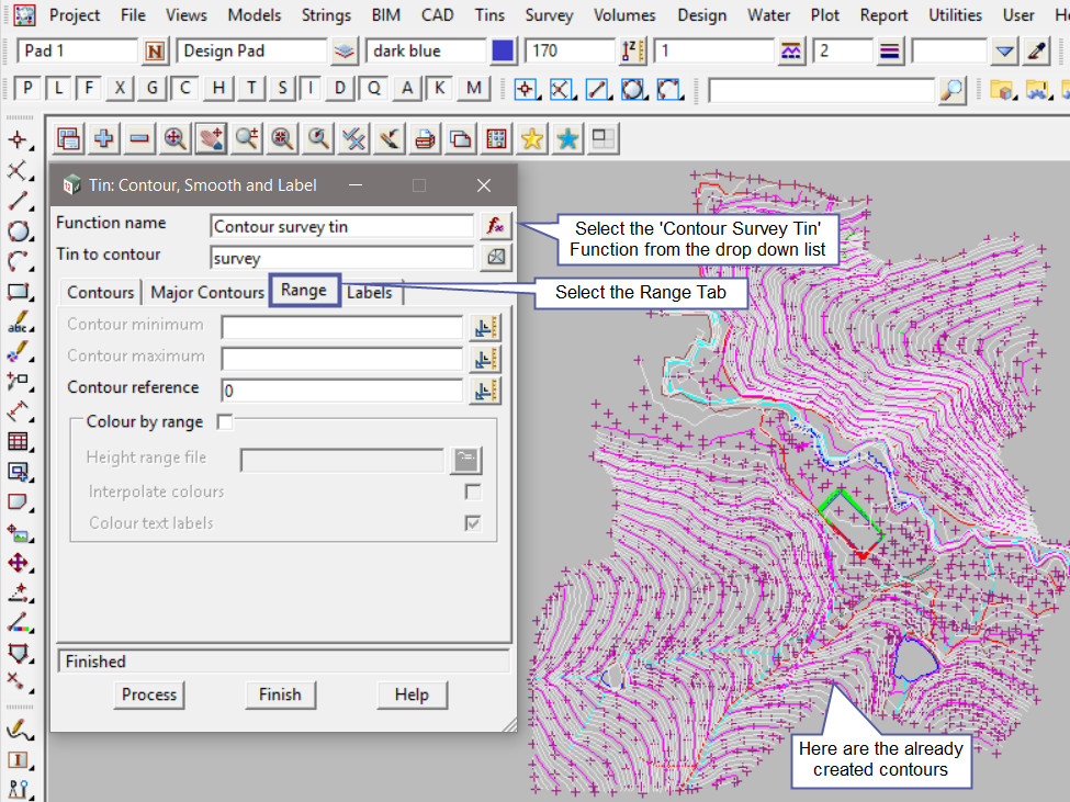 This option is an extra post on utilising the ‘Range Tab’ option on the ‘Contour, Smooth and Label’ panel.