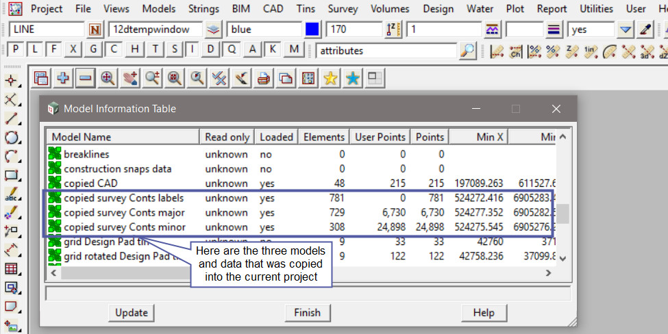 After the model/s are copied into the project, use the ‘Model Information Table’ to check that the model/s are now in the project. Use: Models => Model Information Table