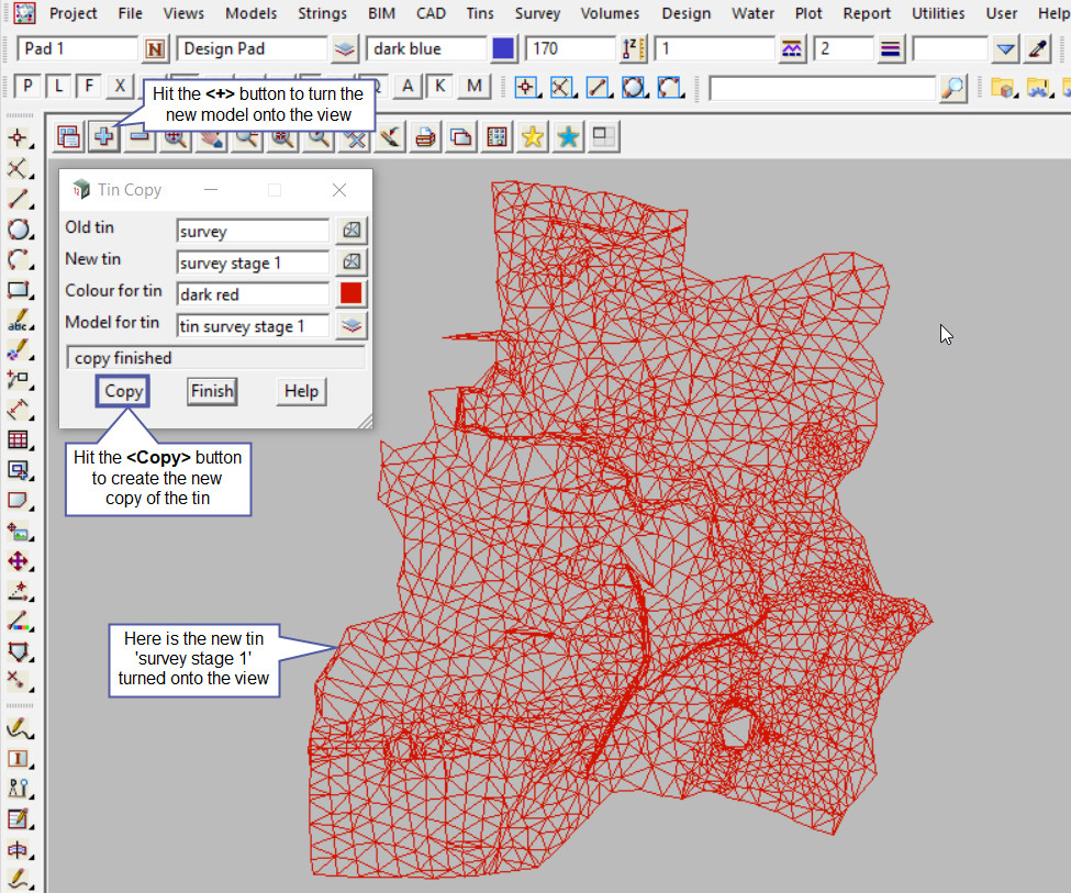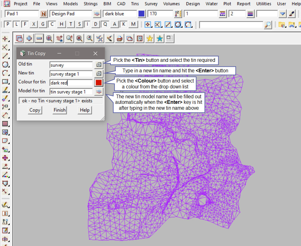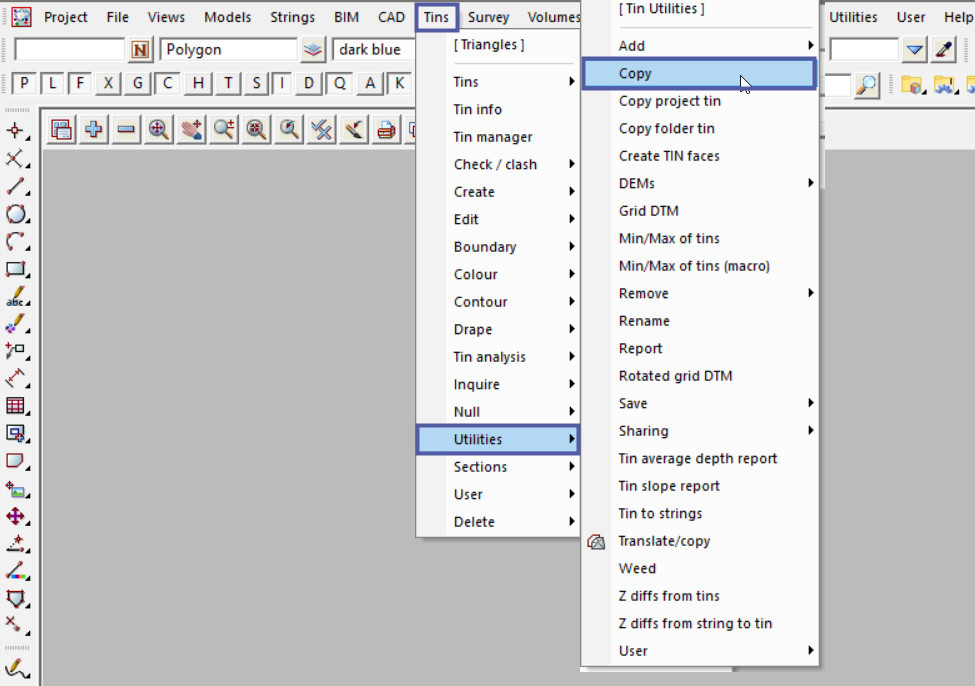 This option is used to make a copy of an existing Tin in the project.
