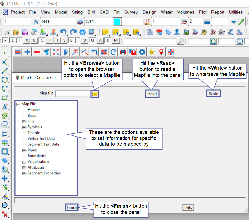 Below is a video describing the available features of the mapfile inside 12d Model, please have a look!