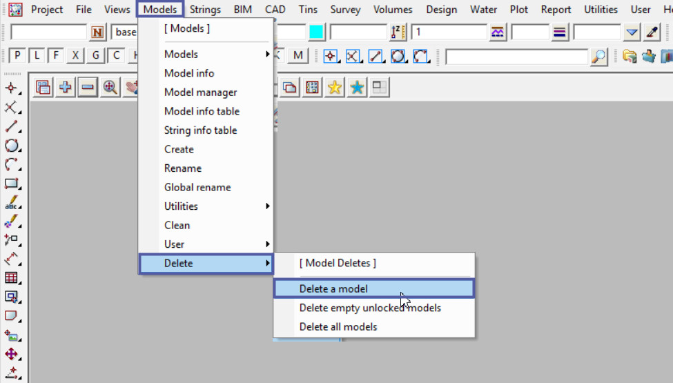 To view the Delete a Model Panel, Use: Models => Delete => Delete a Model