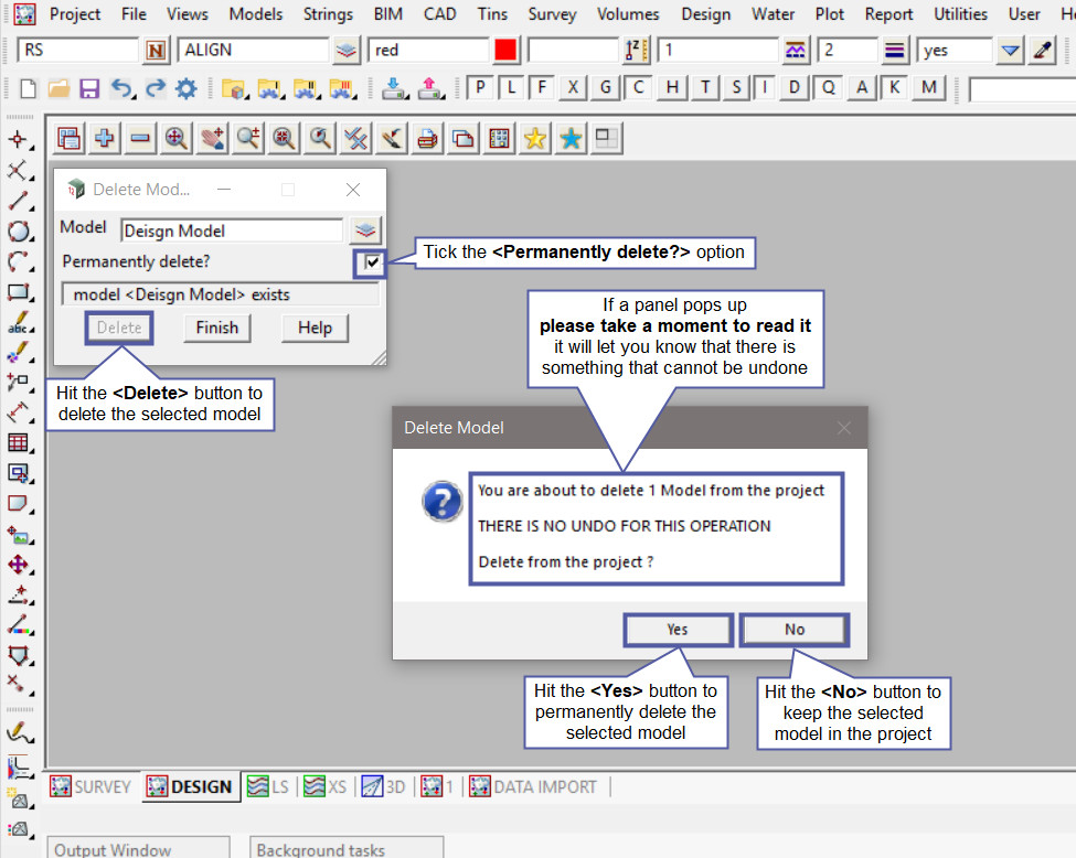 If the <Yes> button is selected the model will be permanently deleted from the project.