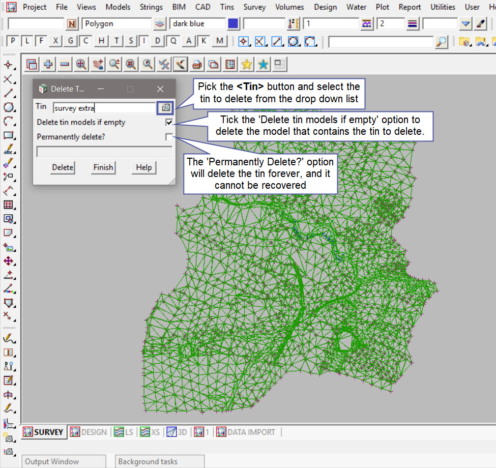 This option is used to Delete a Tin from a project.