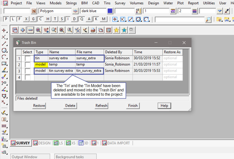 To check if the ‘deleted tin’ has been deleted from the project,