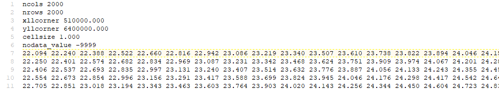 ncols 2000 nrows 2000 xllcorner 510000.000 yllcorner 6400000.000 cellsize 1.000 nodata_value -9999