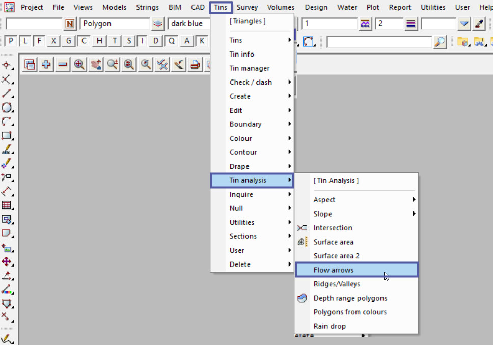 To view the Flow Arrows Panel, Use: Tins => Tin Analysis => Flow Arrows