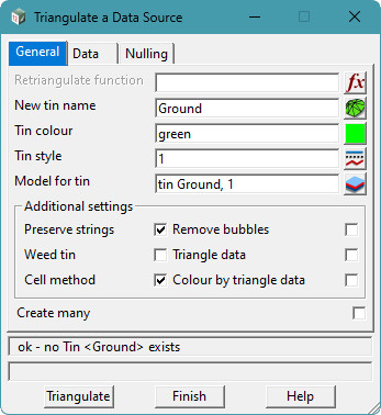For example, in the image, a new tin is being created in the “tin ground” model and set to display in view “1.”