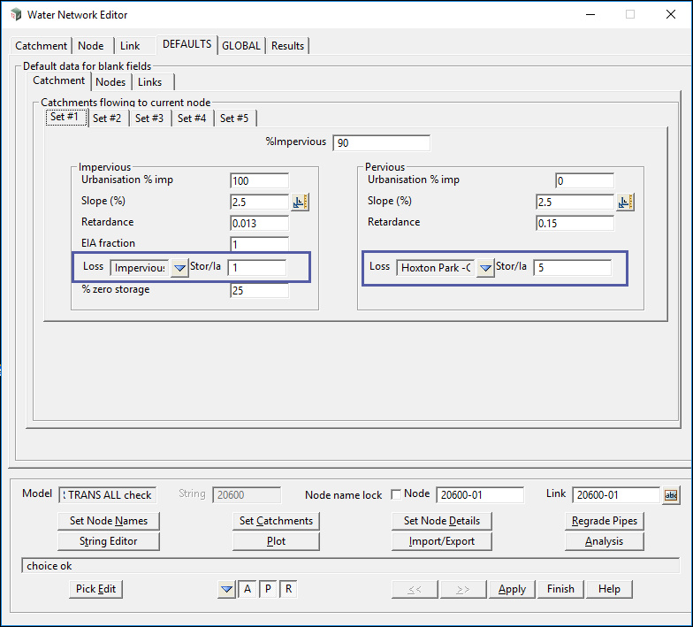 - In the WNE goto the Default/Catchment tab, and set the default soil type for the Impervious and Pervious parts of the catchments.