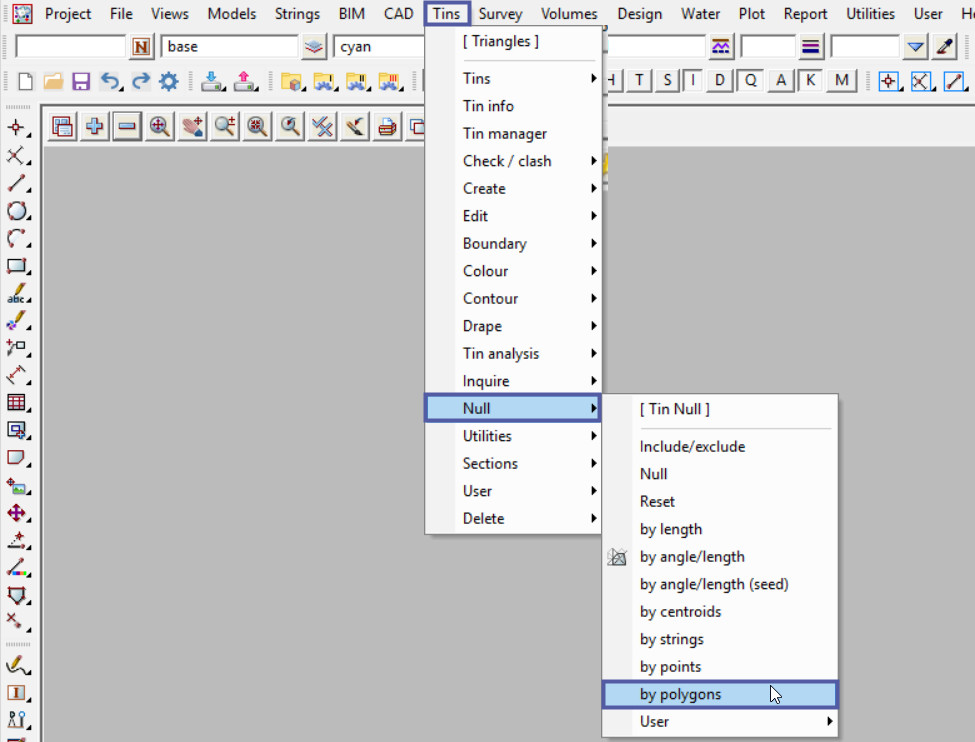 To Null Triangles by Polygons, Use: Tins => Null => by Polygons