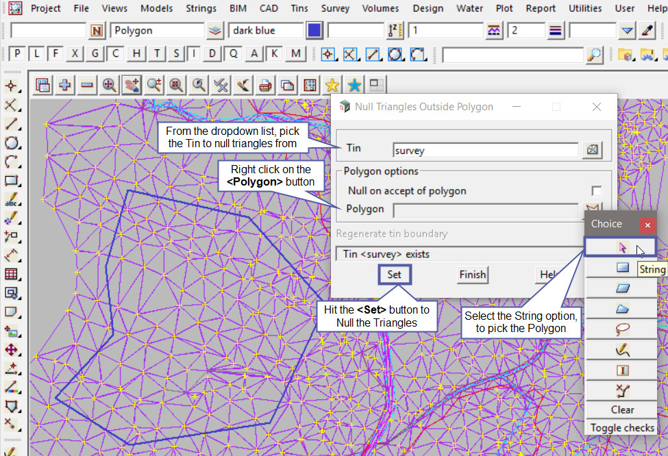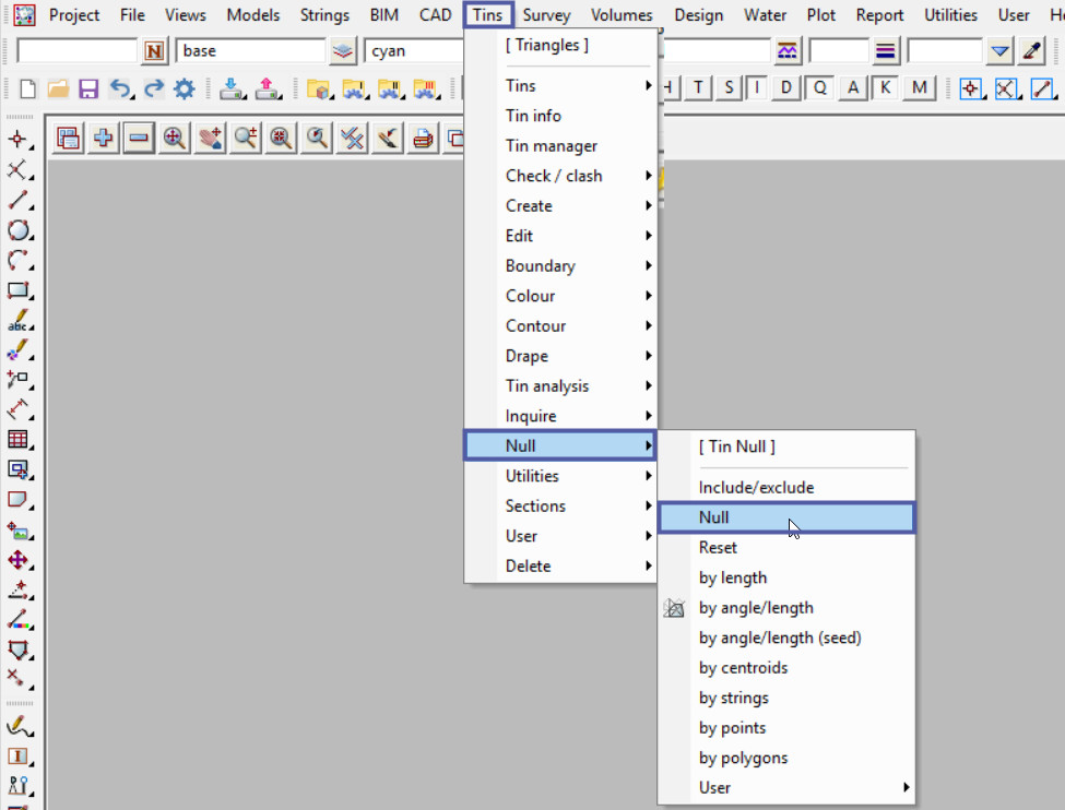 To Null Triangles Outside Polygon, Use: Tins => Null => Null