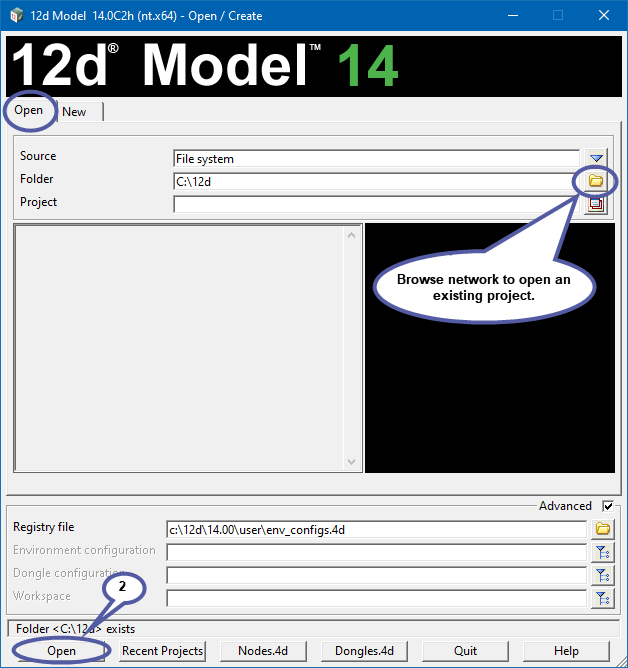 To Open an existing 12d Model project;