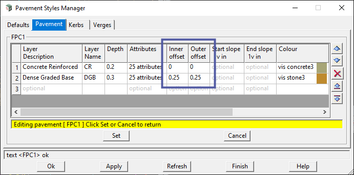 When using Pavement From Tins, applying the Inner/Outer offset varies;